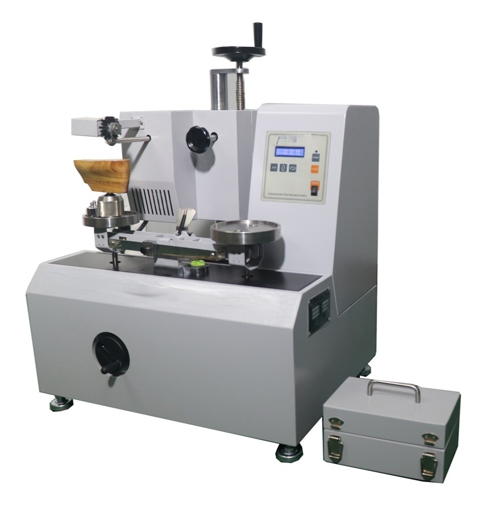 描述: 鞋类耐磨试验机是用于检验成鞋鞋底和成型底(片)耐磨性能的试验仪器。其原理是用旋转的钢磨轮在外底试样平整处进行一定时间磨耗后, 测得试样磨痕长度用来表示试样的耐磨性能。