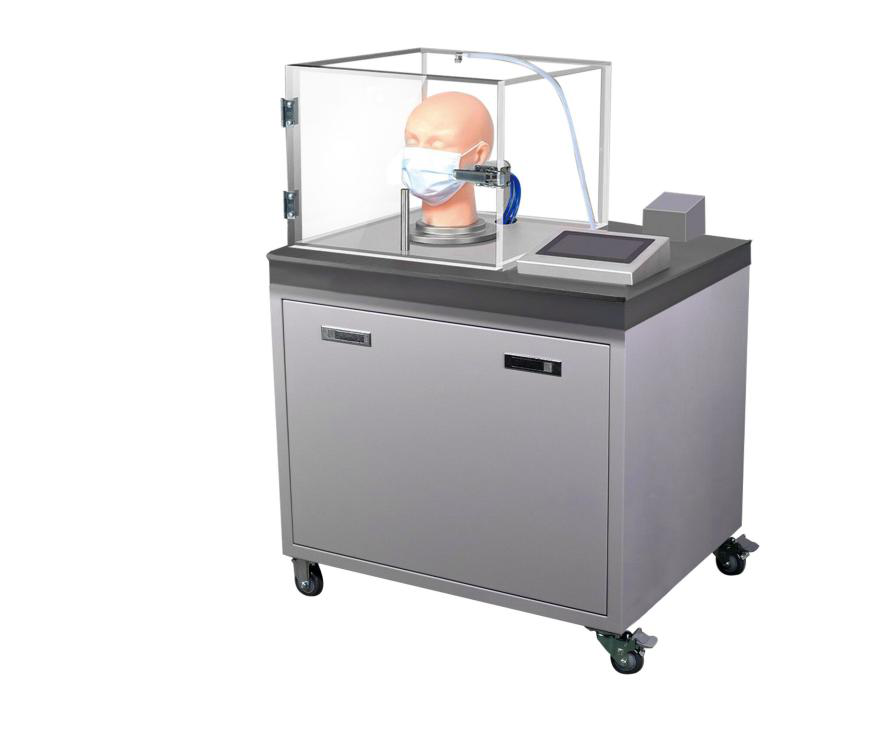 描述: 用于测定口罩对颗粒物的阻隔能力的仪器。一般由气溶胶发生器、呼吸模拟器、头模、气溶胶浓度监测装置及测试仓组成。通过气溶胶发生器发生一定浓度及粒径分布的气溶胶颗粒,导人测试仓中,将口罩戴于头模上,头模内接有规定气体流量的呼吸模拟器,使得规定气体流量的气体通过口罩,采用气溶胶浓度监测装置检测口罩过滤前后的颗粒物浓度,通过计算气溶胶通过口罩后颗粒物浓度减少量的百分比来评价口罩对颗粒物的防护效果。