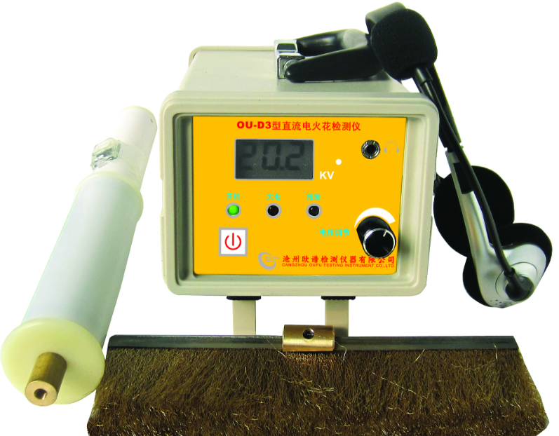 检漏仪主要用于检测被测对象的防腐层质量(防腐材料是否存在气泡或漏点),工作检漏仪低端与被检对象金属端连接,根据防腐层厚度调节输出脉冲电压,由高压发生器输出,匀速刷过防腐层,根据有无报警情况,判断是否存在气泡或漏点。