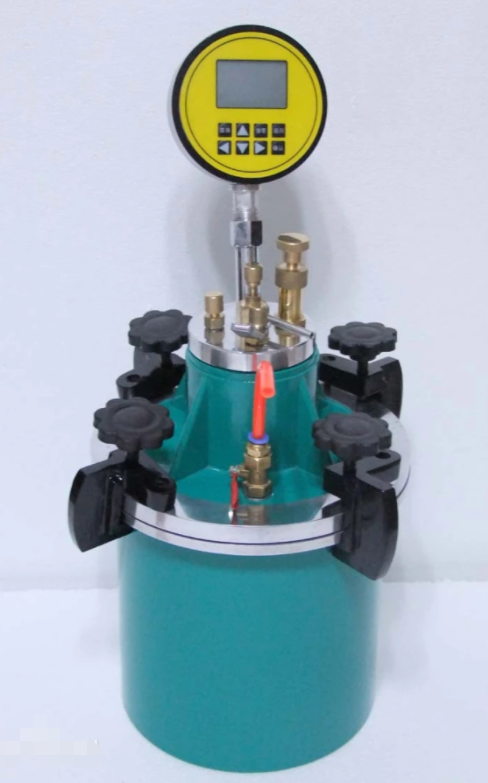 描述: 混凝土含气量测定仪(以下简称测定仪)分为压力示数型和含气量直读型。其工作原理是根据理想气体状态方程,通过平衡气室与量钵间的压力时获得空气在量钵内的体积比率。压力示数型测定仪在指示器上读取压力值,然后在压力与含气量关系曲线上找到压力值所对应的含气量示值,即为被测混凝土的含气量。直读型测定仪则直接在指示器上直接读取含气量值。