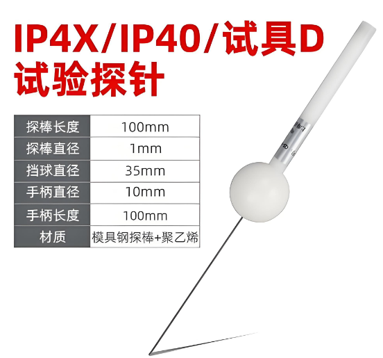 描述: 外壳对人和设备的防护检验用试具(以下简称试具)是一种用于检验防止人体触及外壳内的危险部件及防止固体异物进入设备的外壳的量具。