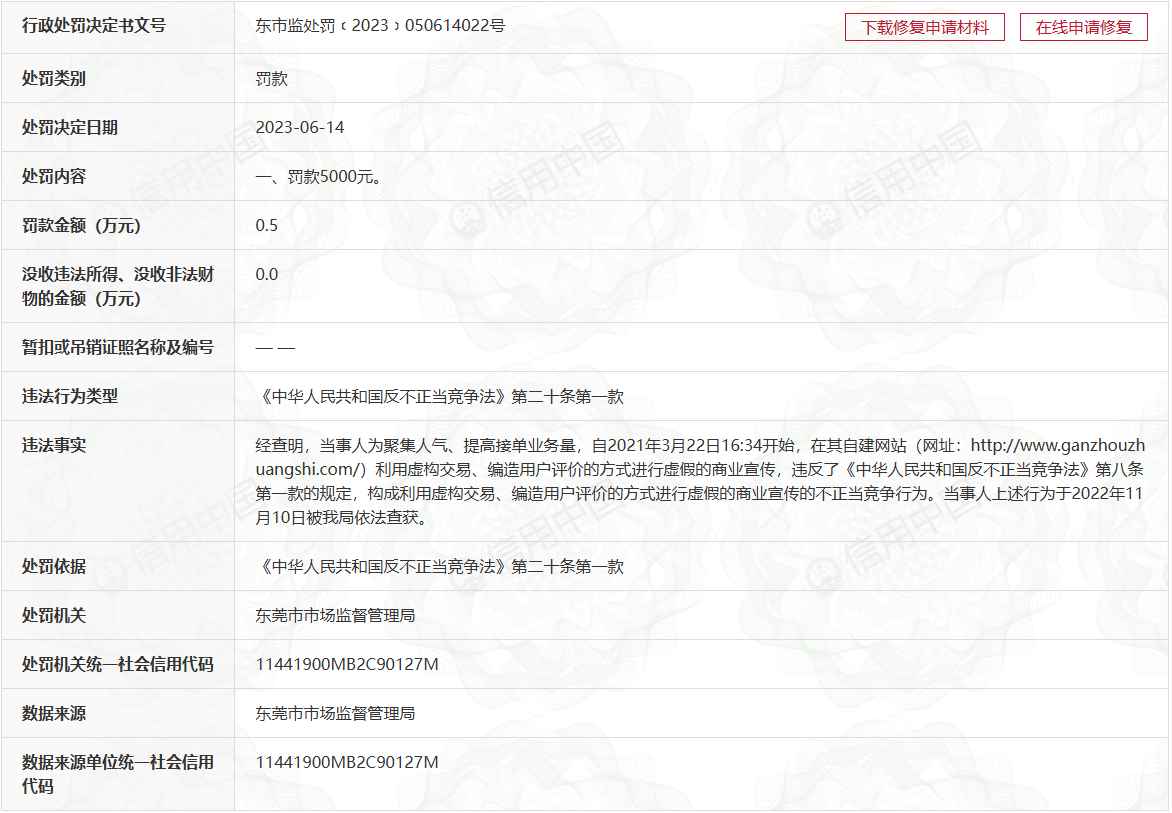 经查明,当事人为聚集人气、提高接单业务量,自2021年3月22日16:34开始,在其自建网站(网址:http://www.ganzhouzhuangshi.com/)利用虚构交易、编造用户评价的方式进行虚假的商业宣传,违反了《中华人民共和国反不正当竞争法》第八条第一款的规定,构成利用虚构交易、编造用户评价的方式进行虚假的商业宣传的不正当竞争行为。当事人上述行为于2022年11月10日被我局依法查获。