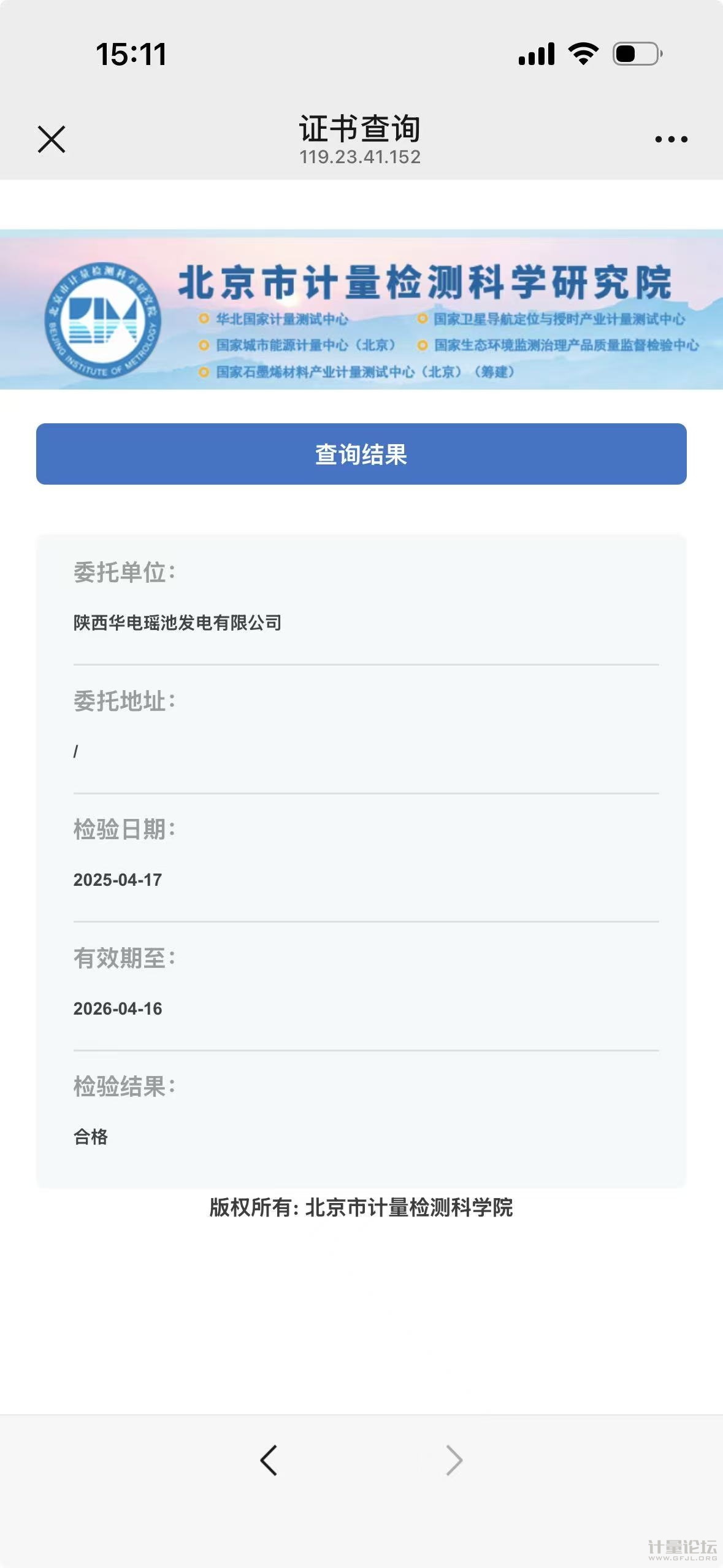 模拟北京市计量检测科学研究院证书的二维码验证,伪造证书