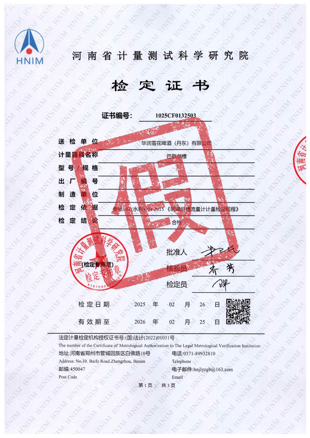 华润雪花啤酒(丹东)有限公司 作为知名企业,持有此类极低技术含量的伪造证书,暴露出供应链质量管理存在严重漏洞。建议企业立即倒查证书来源,核实第三方检测机构资质。